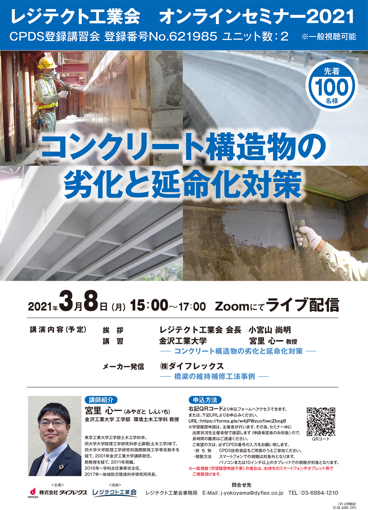 レジテクト工業会 3月8日15時から宮里心一教授による講習「コンクリート構造物の劣化と延命化対策」をZOOM配信