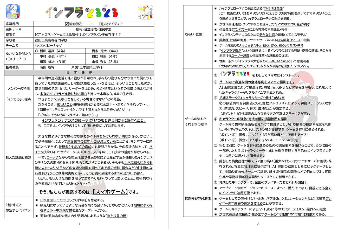 p>チーム「わくわくピーナッツ」(徳山高専)の提案概要書(「インフラテクコン」HPから)