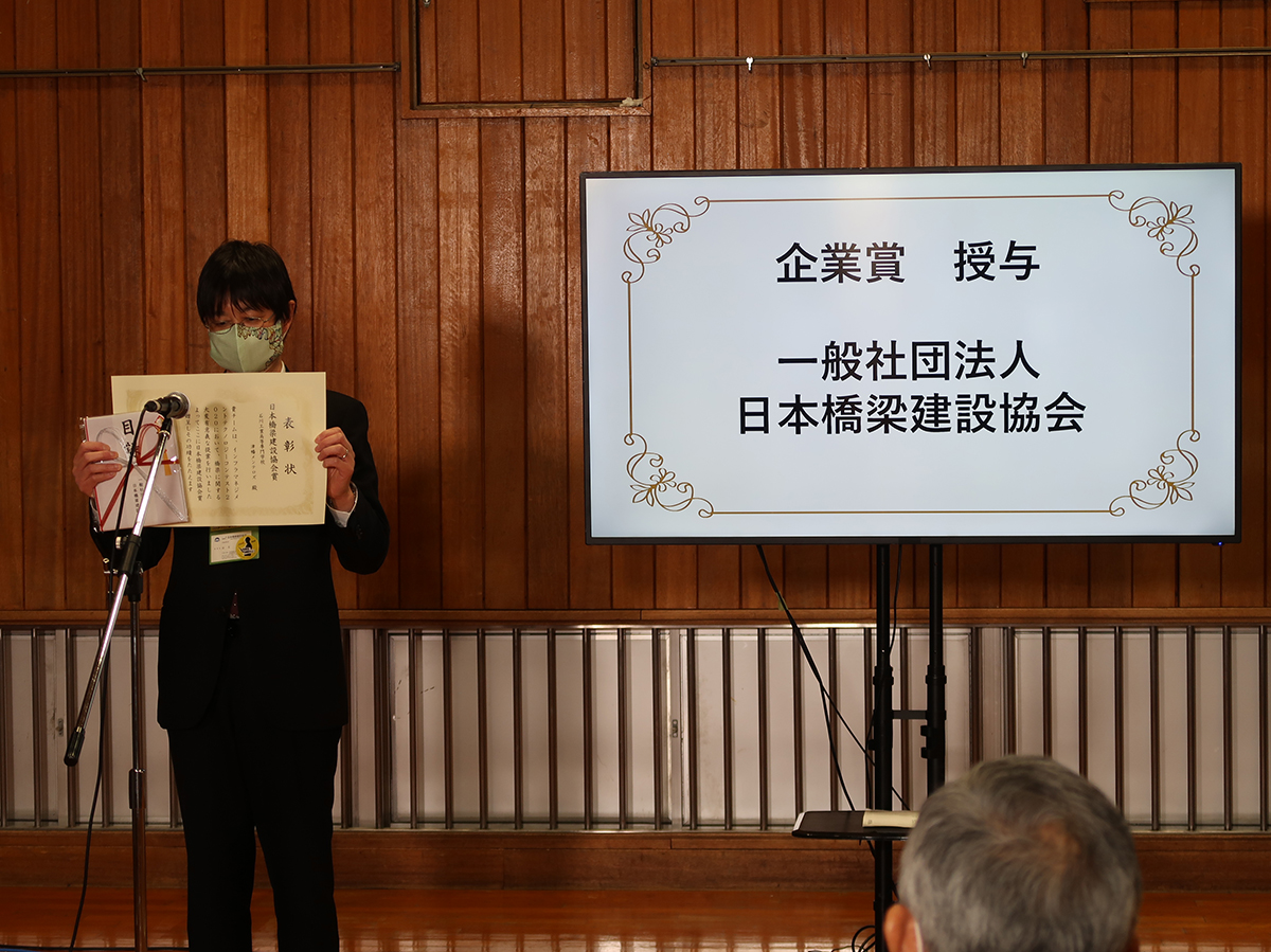 企業賞の発表もあわせて行われ、協賛企業・団体の日本橋梁建設協会、大成建設、熊谷組、奥村組、ガイアート、佐藤工業などが参加30チームのなかからそれぞれが選んだチームに授与を行った。