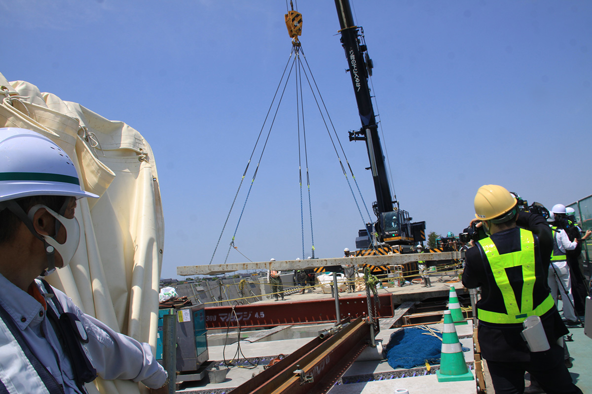 現場工事には昨年(2020年)度から着手している。まず、昨年度は対面通行に必要な中分拡幅(上下線間の隙間への横梁およびRC床版の設置)を実施し、今回の工事で下り線、さらに今秋に上り線の床版取替を行い、2022年度に中分の床版および壁高欄を設置して、完了させる方針だ。