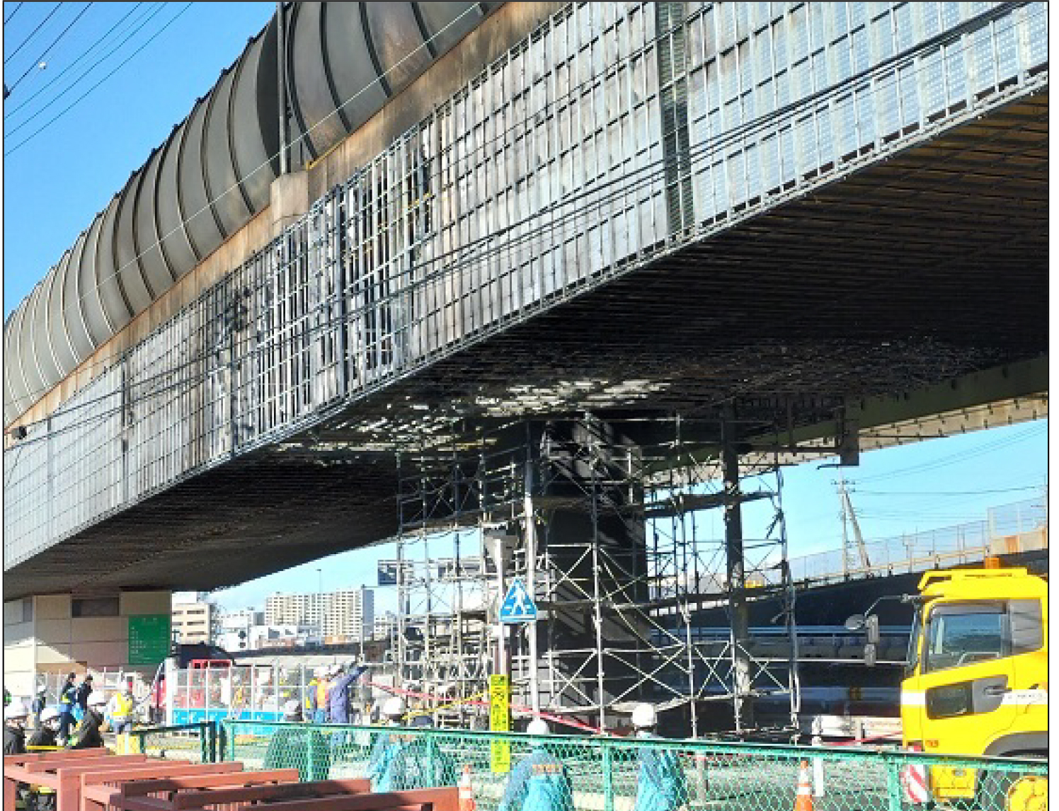 東名高速道路横浜町田ICのランプ橋塗替え現場で火災