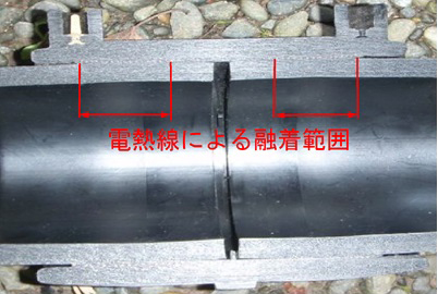 (a)高密度ポリエチレン管を使用した事例 (b)融着継ぎ手