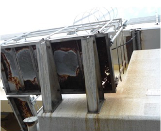 図-16 漏水により腐食した検査路 図-17 FRP製の中段検査路