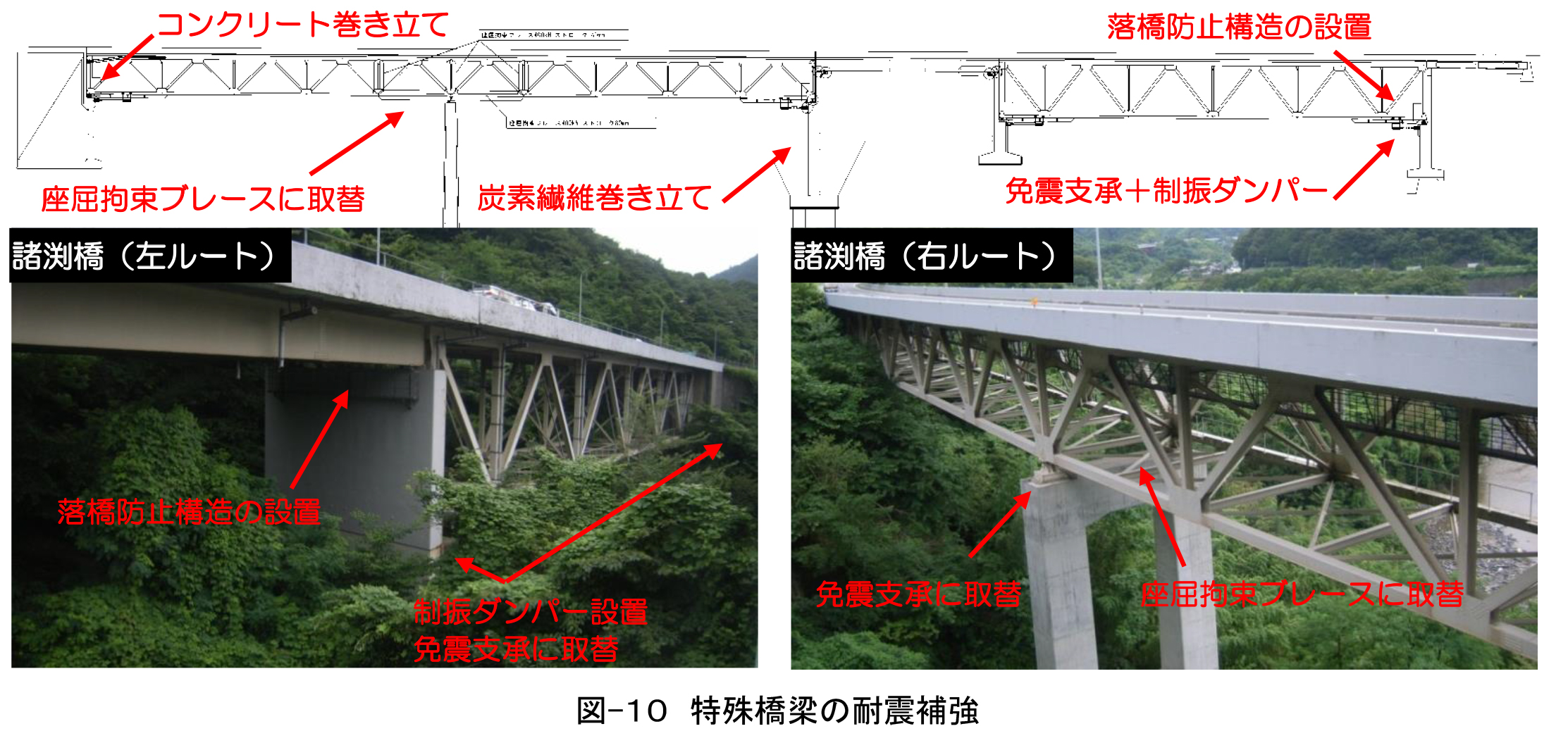 東京支社ではアーチ橋やトラス橋等の特殊橋梁において上部工の耐震補強を計画的に進めており、今年度は東名高速道路の諸渕橋(トラス橋、大井松田IC~御殿場IC)で耐震補強工事に着工した。(図-10参照)