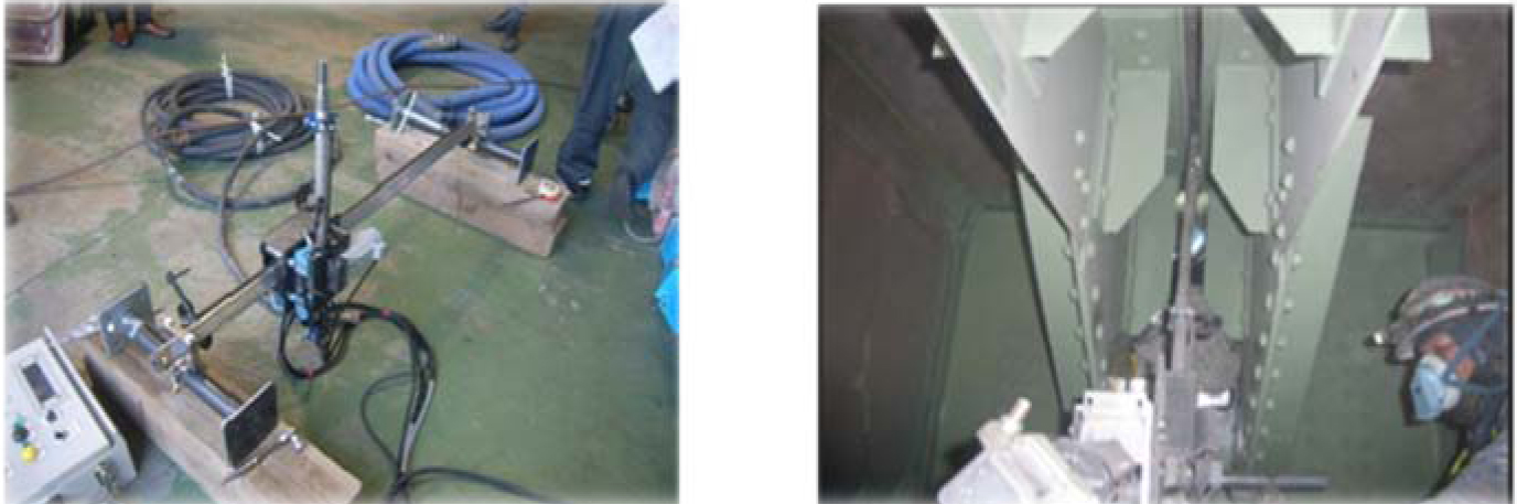 図12 自動遊間ブラスト装置による桁遊間のブラスト状況