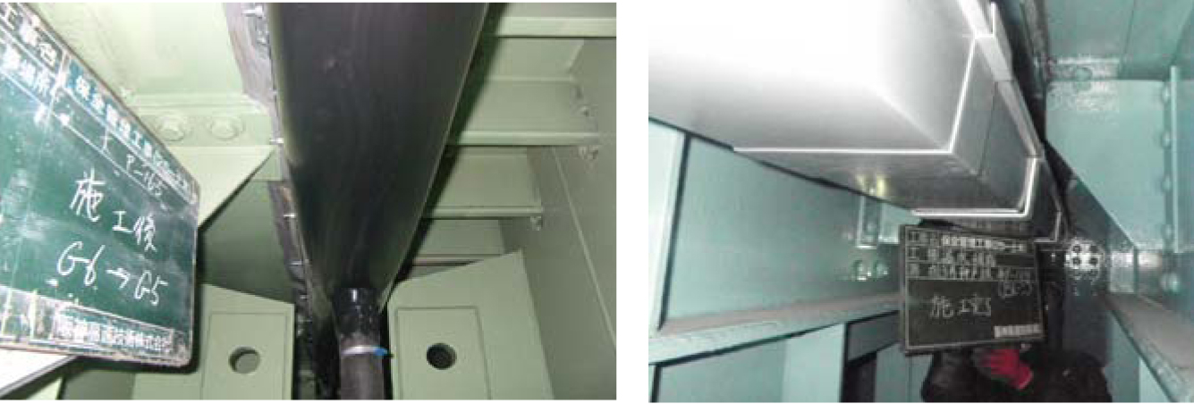 図13 伸縮継手漏水対策例(左:ゴム樋、右:角樋)