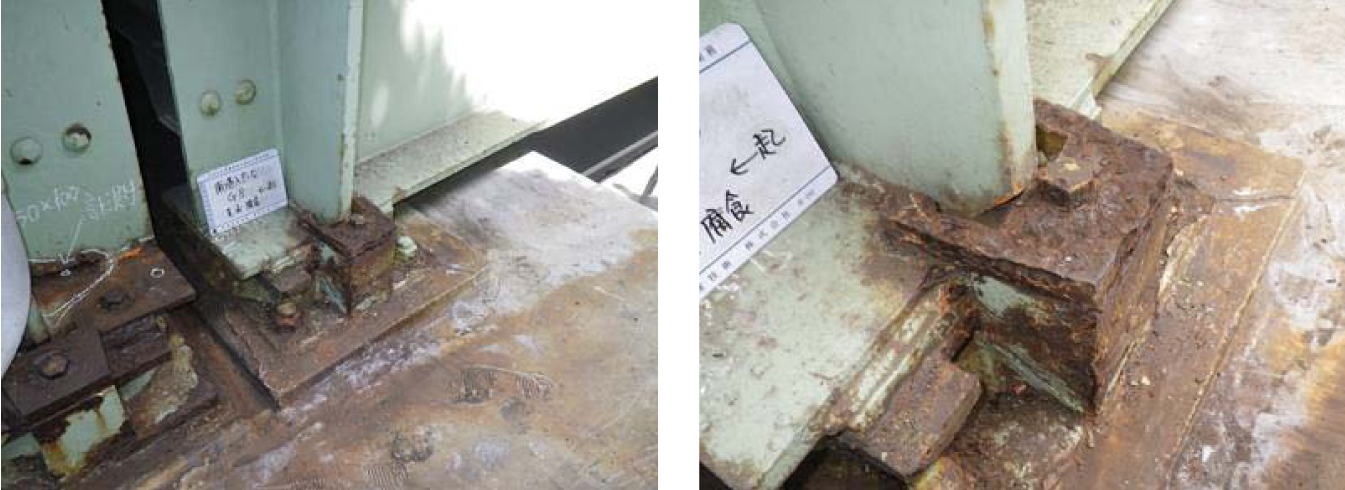 金属支承については設置時期が平成初期以前と古いものが多く、伸縮継手からの漏水等設置環境も厳しいことから、腐食事例の報告が多い(図16)。これらについては程度の悪いものから計画的に支承取替を行っている。