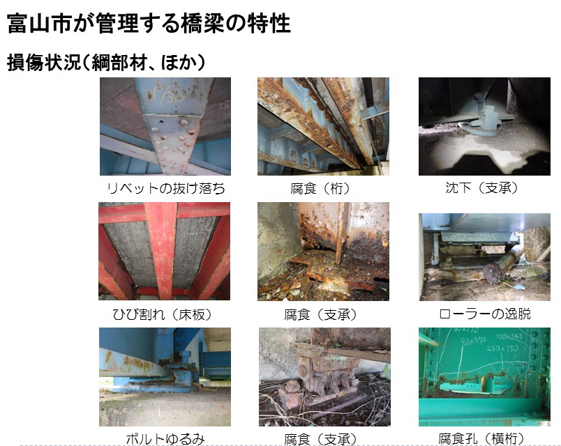 富山市が管理する橋梁 鋼橋部材の損傷例