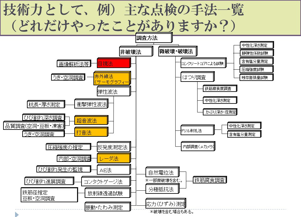 たとえば、点検を実施し、その原因の特定や更なる調査の必要性を感じたときの、非破壊検査や破壊検査であるが、どれだけの知識をお持ちだろうか?意外と、ここが皆さん弱いところである。打ち合わせ時に聞いていると、まったく途方もない手法や、精度を話している方々が居る。いわゆる嘘である。これは、知見がないからである。私は、其れまでの自分にこの部分も欠けていると思い、非破壊検査会社に数年間お世話になった。