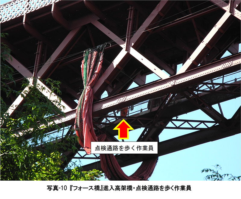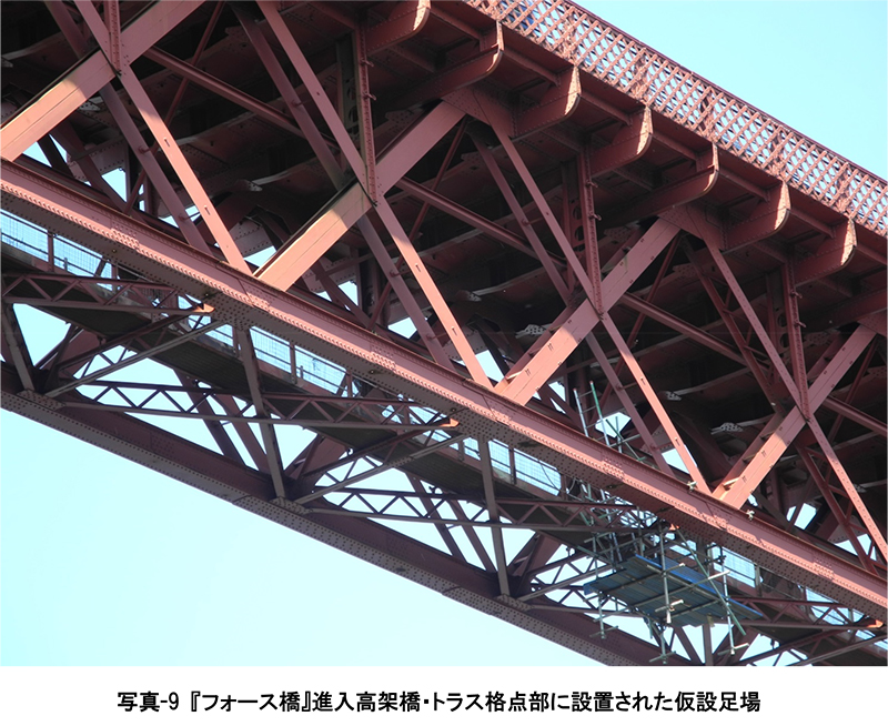今でも1日約200両の車両が通過(写真‐5参照)する『フォース橋』のメンテナンスは、先の『テイブリッジ』と同様に多くの技術者に見守られて大切に種々な措置がなされている。