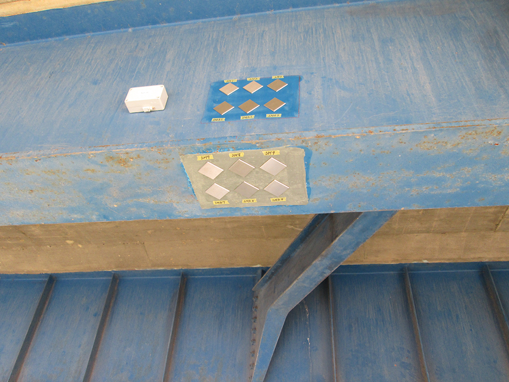 ワッペン式暴露試験とは、ワッペン試験片と称する薄く軽量な板状の試験片(50mm×50mm、t=2mm、質量精度0.001g)を実橋に接着し、質量変化を計測することで、腐食減耗量を算定する試験方法である。この試験により愛知県の鋼橋の腐食速度を架設位置ごとにある程度把握しようと試みているもので、補修の優先順位を判断するためのひとつの指標になると考えている。ここでは検討内容の詳細は省略するが、ワッペン式暴露試験結果から現行の基準類で示されているものとの違いや、私の勝手な思い込みと異なった事例について少し紹介する。