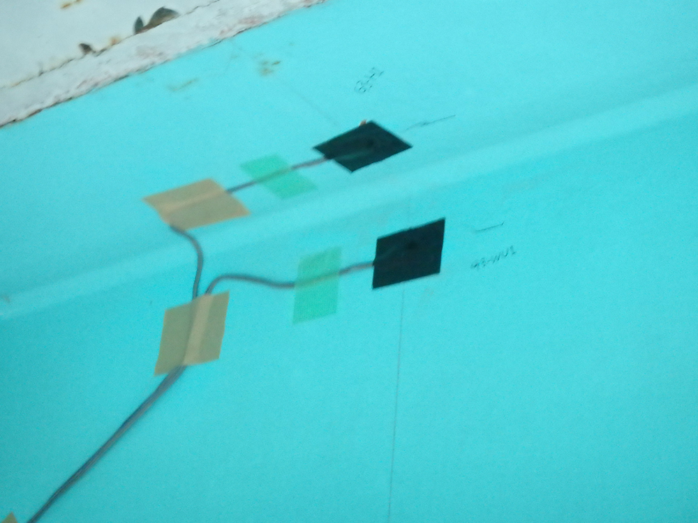 (左)写真-7 ワッペン試験片 (右)写真-8 設置状況