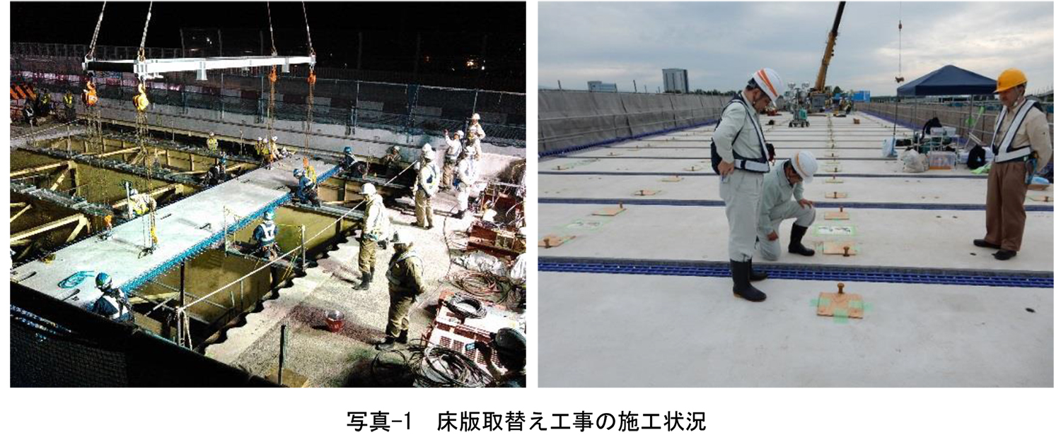 NEXCO中日本では、特定更新等事業において既設橋の床版取替え工事を順次進めている(写真-1)。取替え対象となる床版の多くは老朽化が著しい鋼橋のRC床版であるが、その主たる劣化要因の1つが凍結防止剤散布に伴う塩害である。このため,取替えにより新規に設置する床版(以下、「更新床版」という)では、既設床版で劣化要因となった環境作用に対する耐久性の確保が重要となる。