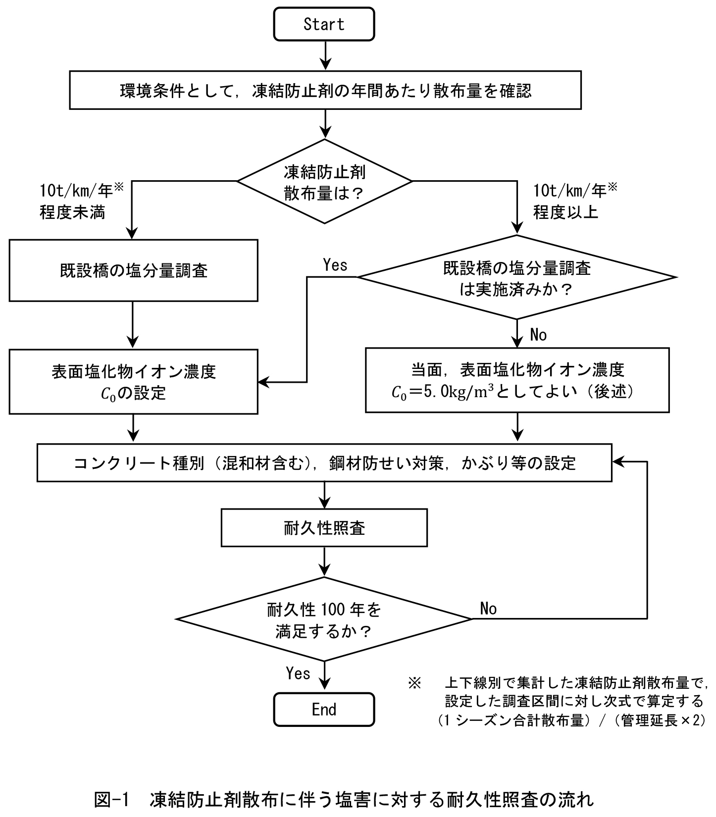 凍結防止剤散布に伴う塩害に対する耐久性照査は、次の方針で行うことを基本とした。