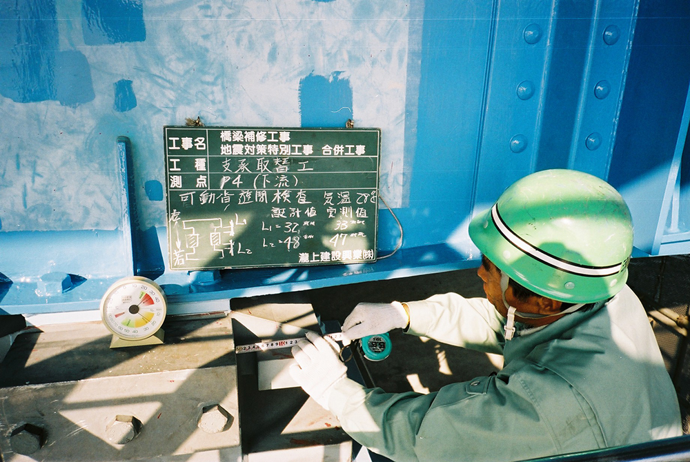 支承取替は元にある位置に支承を設置するため、既設支承から逃げ墨などにより再現するが、可動支承は施工時の温度による伸縮を考慮する必要があった。また主桁掛け違い部は、ジャッキダウンの後、橋面のフィンガージョイントに段差ができる恐れがあるため、その時は表面を切削し擦り付けることとした。これらは施工しなくてもあらかじめ施工機械や人員、交通規制などの準備をしなくてはならない。