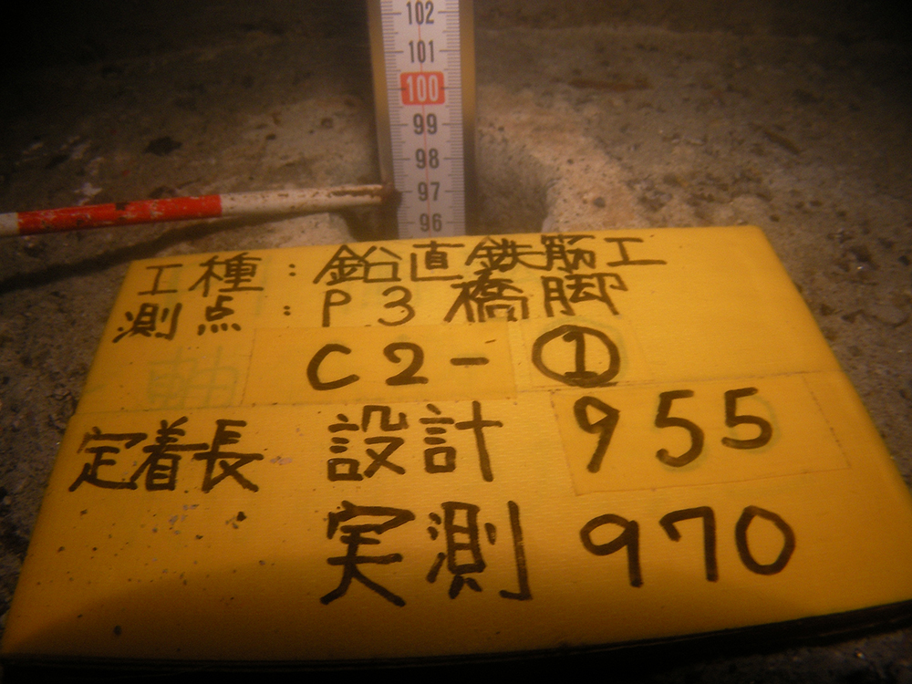 水中作業の施工管理は水中カメラを使用した。削孔数、削孔径、削孔長、アンカー定着長すべてが全数管理であり、かつそのほとんどが監督員の立会い確認を必要とするものであった。