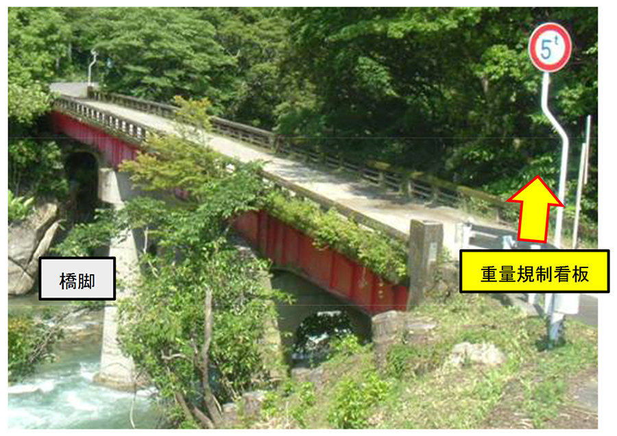 供用している管理橋に、顕著な変状があり、古い設計基準で設計・建設され耐荷力が不足している場合は、管理者は車両の通行を制限する規制を行うことになる。