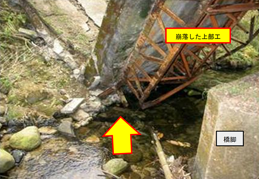 逆に、道路管理者が、耐荷力が不足する道路橋に荷重制限規制(道路標識等の設置)を行わなければ、総重量20t、軸重10tの車両は、何ら制限なしに何時でも通行できるはずだ。であるから、写真-16のような落橋事故は、道路管理者の怠慢である。当該事故は、規制看板も無い道路橋に車両が通行、落橋瞬前に通り抜け人災とはならなかった。もしも、落橋に車両や人が巻き込まれれば、全国放送となり、管理者の重大な瑕疵となった。