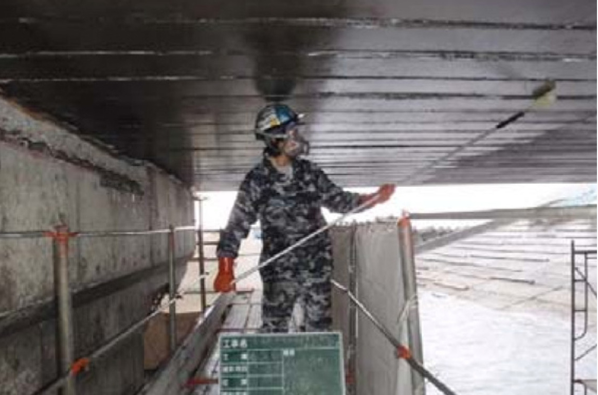 写真-5 沿岸の道路橋主桁へのシラン系表面含浸材の施工状況の一例