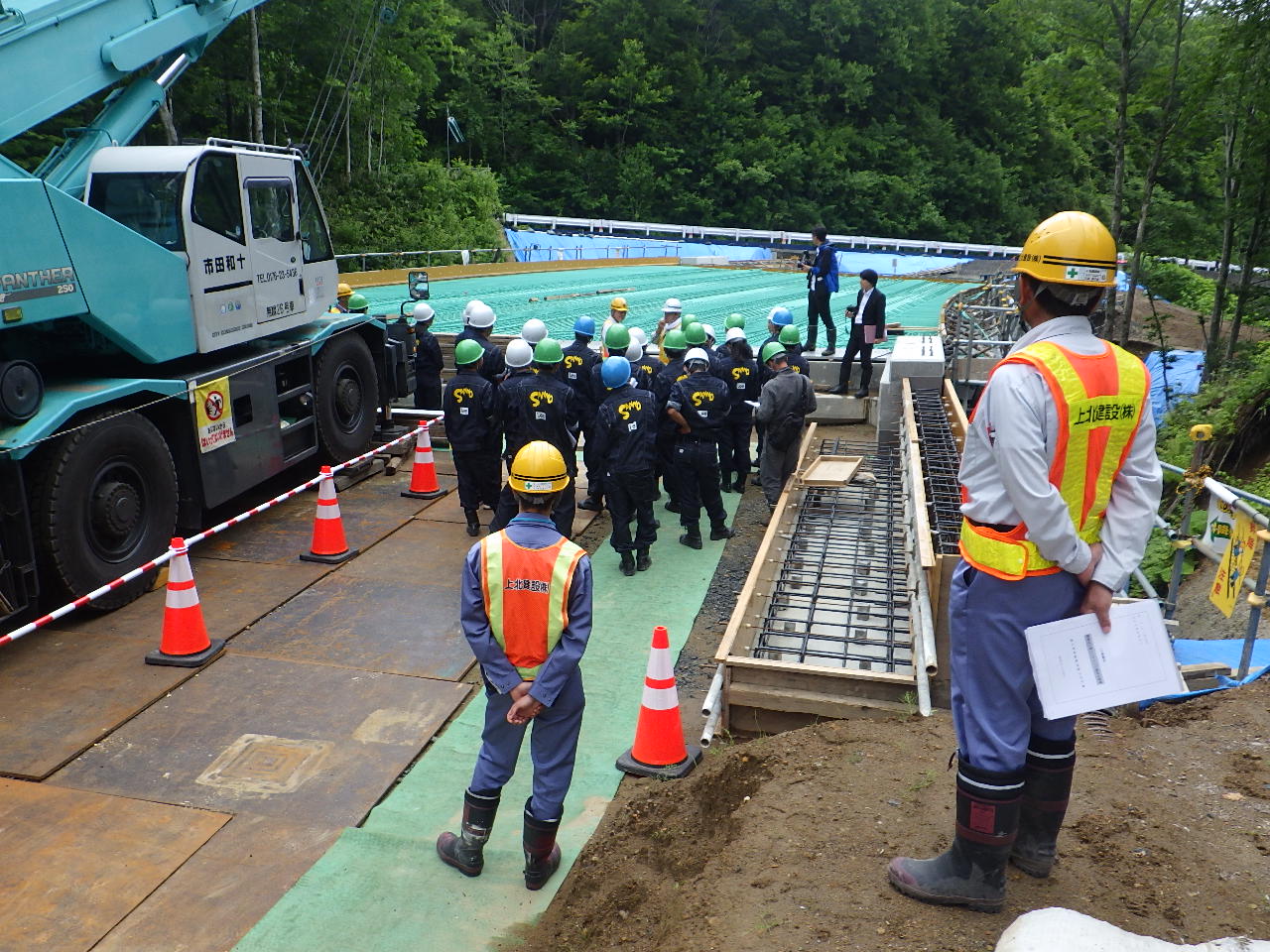 細田 青ぶなの現場についてもう一つ聞きます。私が現場に行ったのは2018年の7月だったと記憶していますが、模擬床版の施工をしていました。そこには西松建設などのちに高耐久床版を施工する他の会社も見学に来ていました。びっくりしたのは十和田市内の高校生が大型バスに乗って沢山見学に訪れていました。忙しい中で仕掛けたわけですが、あれはどういう思いから行ったのですか