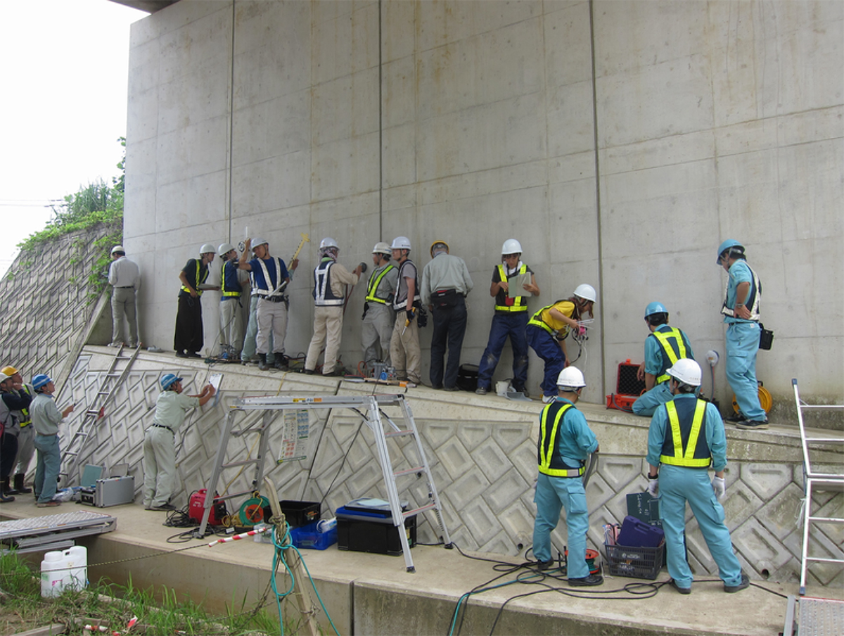 写真3 山口県のひび割れ抑制システムの開始前の橋台の調査(2010年7月)