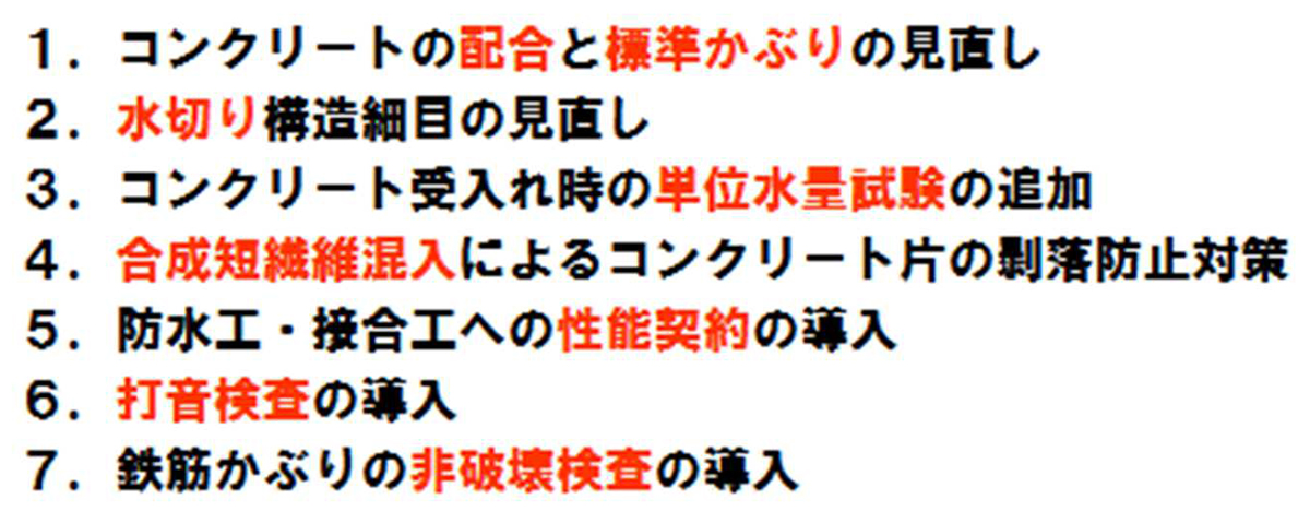 鉄筋コンクリート、無筋コンクリートを含め、コンクリートの剥落対策としてJR東日本では表-1のような対策を実施しました。設計、施工管理、検査それぞれに対応をしました。