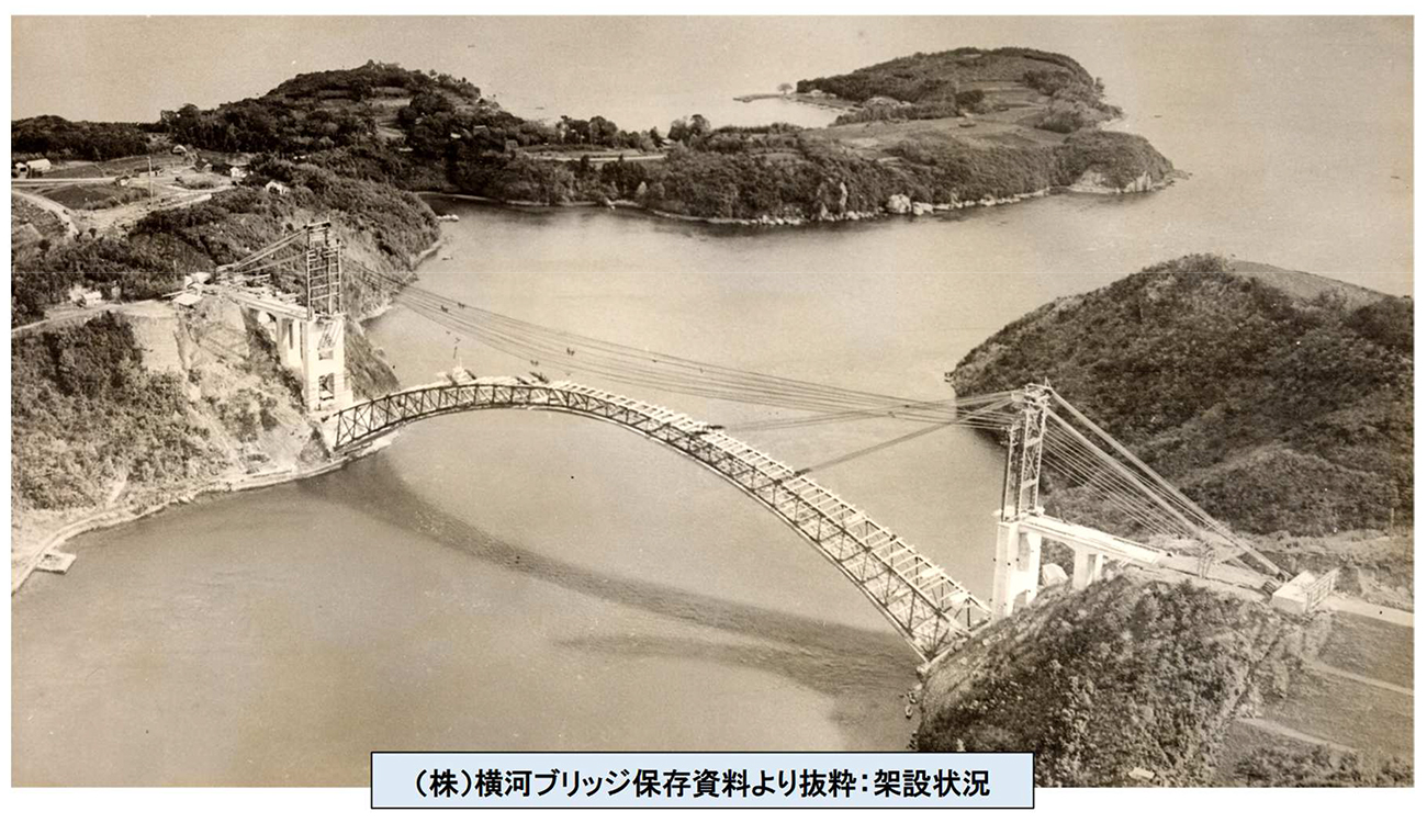 昭和28年、サンフランシスコ講和条約締結2年後、戦後間もない混乱期である。長崎から離れた山間の大村湾北端、400mを超える海峡に、それも潮の流れが速く渦を巻く伊ノ浦瀬戸を跨ぐ橋梁を架ける自信が新人・吉田巖さんに有ったのであろうか?