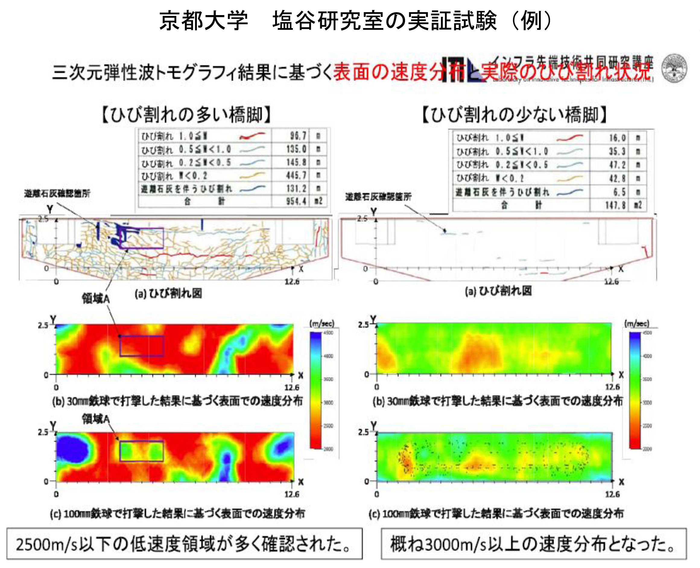 もうひとつ、現状で足りないのが、「実証試験」である。様々な点検手法や補修材料などの実証試験が、あまり行われていない。私のところでは、やりたいと言えばオープンにしている。そのせいか、最近は実証試験をやりたいという企業や研究者がだいぶ増えてきた。大学の先生方も注目し始めた。正直、遅い。しかし希望があれば、フィールド提供の協力をする。