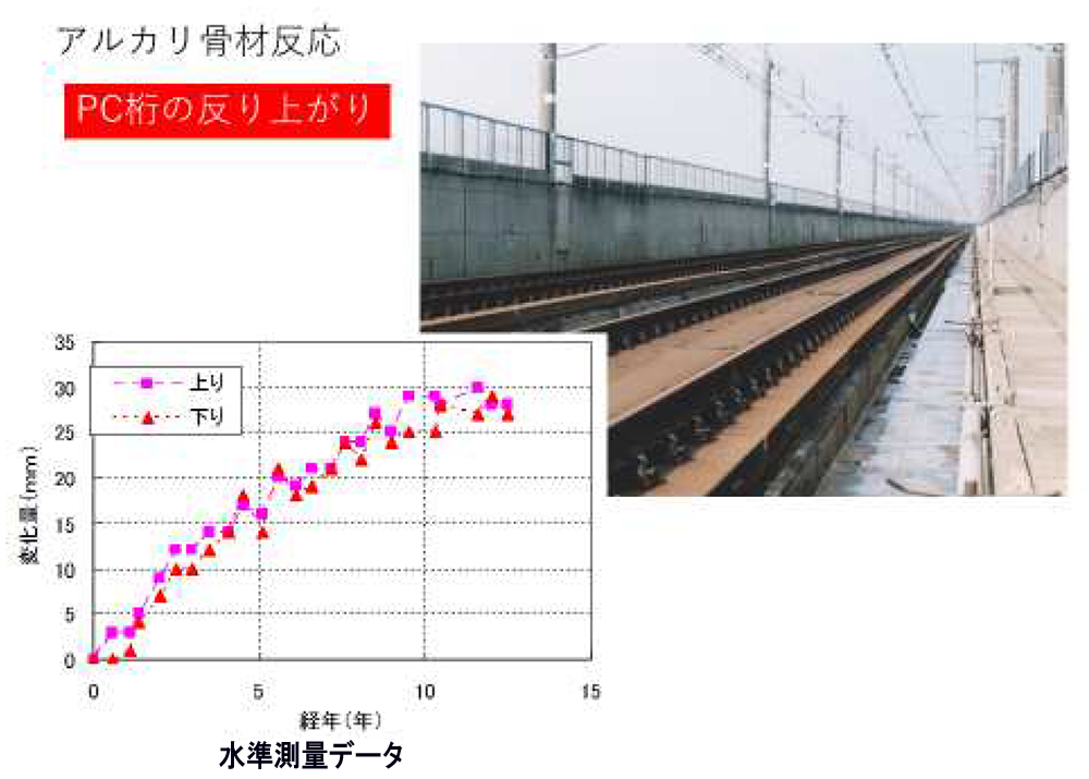 1.アルカリ骨材反応で桁がそり上がった例