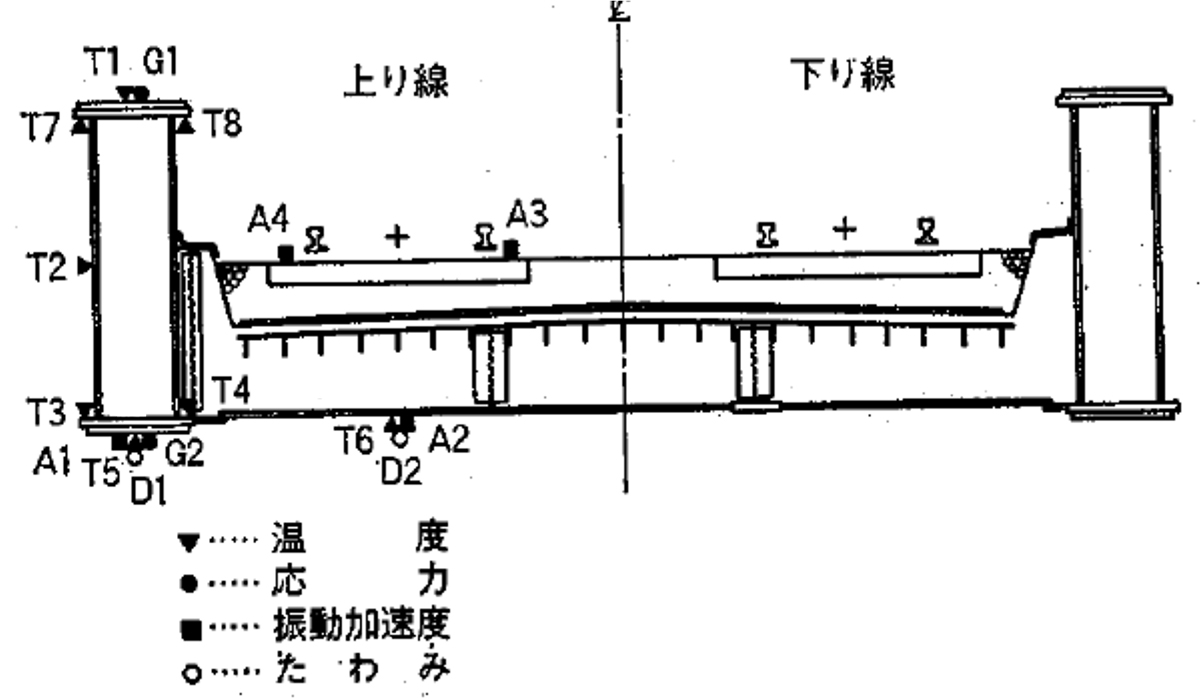 図-2 桁断面と各種計測位置