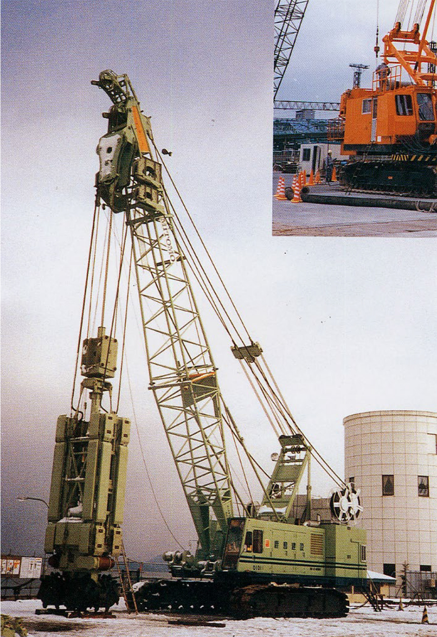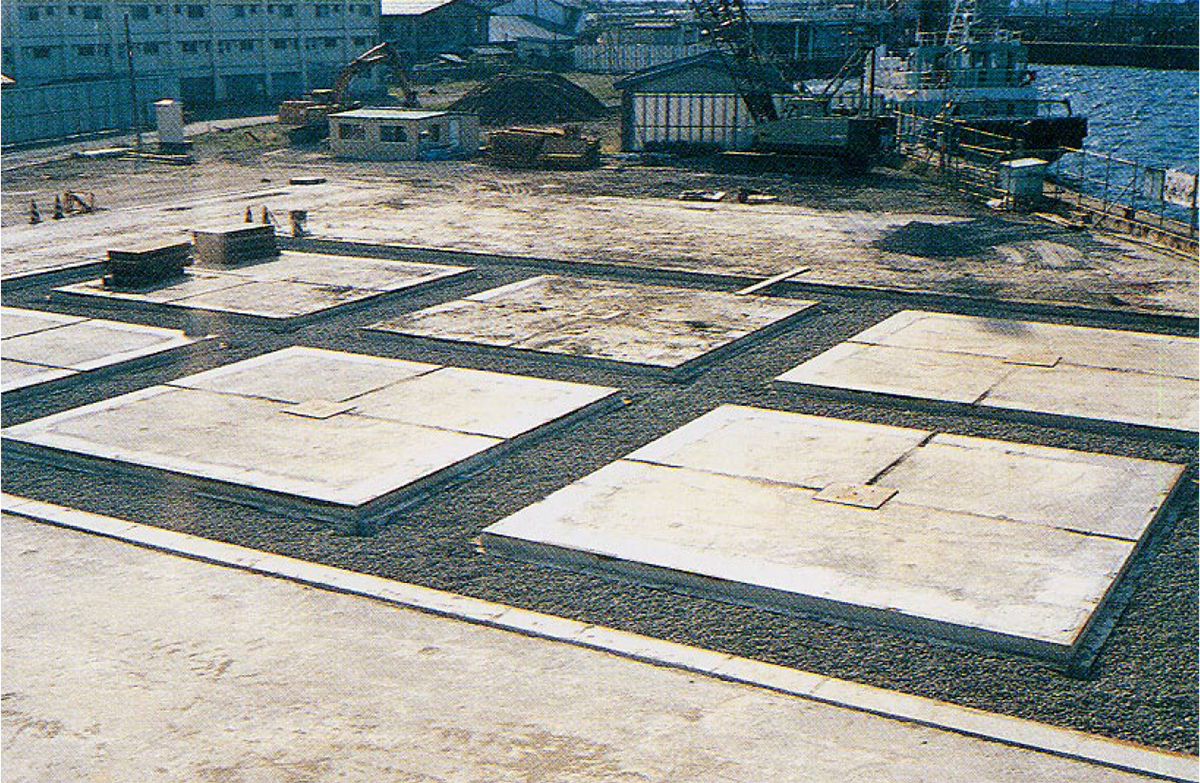 写真-7は青函連絡船の入る港の上で、ワーゲン施工をしている状況です。青森駅の線路上も同様な方法で施工しています。下に物や水も落ちないように防護を完璧にして、列車運行に制約されず施工しました。