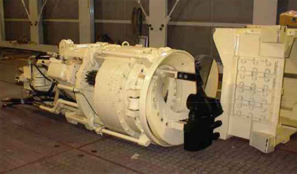 写真-5は反対側の竪坑の状況です。ジャッキが据え付けられて刃口と結んだケーブルを引き込んでいます。ジャッキは連続牽引ジャッキを用いています。