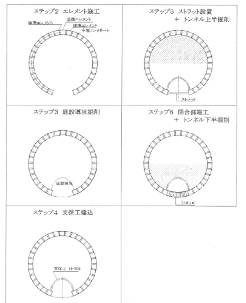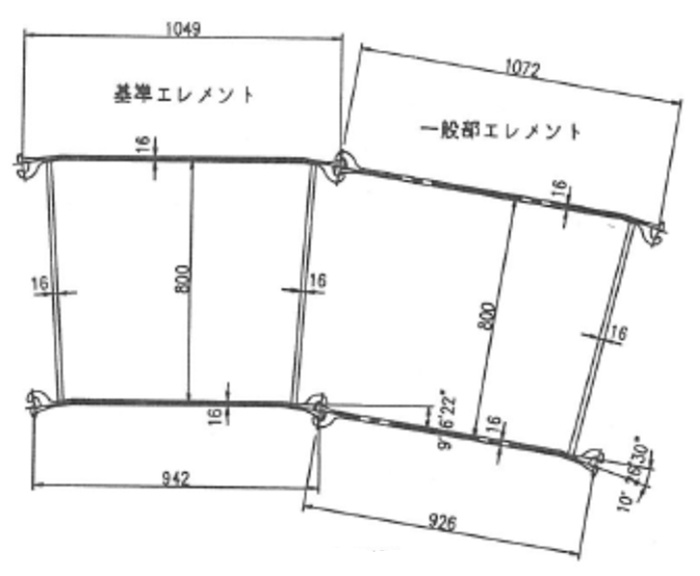 円形トンネルのため、通常は矩形のエレメントですが、今回は円形に合わせて図-6のように台形のエレメントを組み合わせて施工しました。