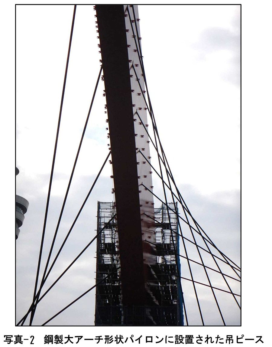 図-20 鋼製大アーチ形状パイロン塗替え状況
