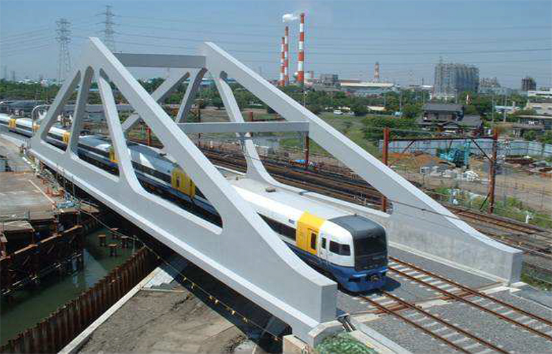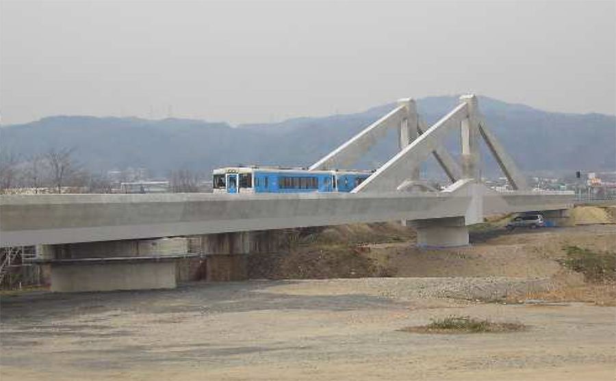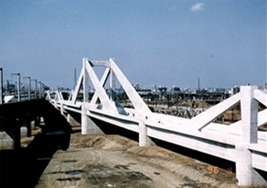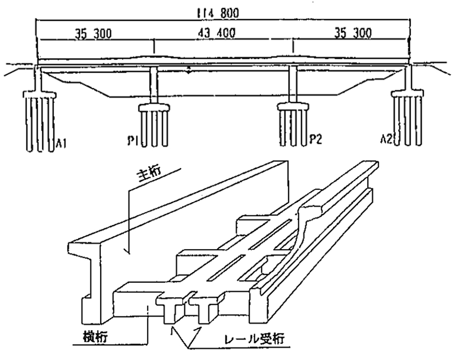 東北本線名取川橋梁(40.9m+51.5m、108.4m+108.6m、51.9m+52.9m、51.9m+52m/写真-1)は、斜材をPC版とした橋梁です。
