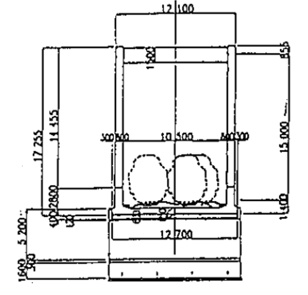 東北地方で雪が多く、かつ人家が近くにない場合は床から河川に直接雪が落ちるように床を格子にした構造物も造られます。点検などに人が通ることもあるので、グレーチングが敷かれています。在来線の河川改修などではレールレベルが上げられないので、下路桁形式が多く採用されます。新幹線構造物にも開床式の構造物はあります。一般部で開床式のラーメン高架橋が採用されています。写真-3、図-2は五能線十川橋梁です。グレーチングの目の大きさは、人の足が入らないで、かつ雪が落ちるように選ばれています。