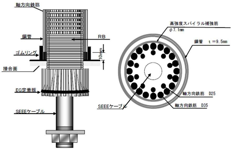 吊り材の構造は高密度スパイラル鉄筋の中に鉄筋比20.5%の高密度軸方向鉄筋を配置した構造です(図-7)。