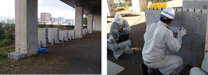余談ではあるが、広帯域超音波法の判定基準の明確化と精度向上の取り組みによって、前述2-1に示した3つの課題のうち①と③に係る課題が概ね解決できると考えていたが、コスト面での課題が残っている。近年では、グラウト充填不足箇所を調査する非破壊技術が新しく開発され、その成果が中日本高速道路㈱などから公表されているところであるので、JR西日本においても写真-3の試験体を用いたブラインドテストを行い、安いコストで効率的に調査できる非破壊検査技術の山陽新幹線PC桁への適用拡大について検討を行う予定である。関心を持たれた方は、ご連絡をお願いしたい。