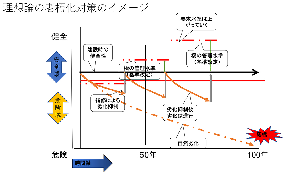 理想論と実際の老朽化対策のイメージ