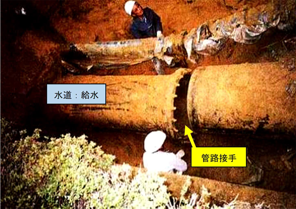 道路は車両や人に供するだけではなく、日々の生活を支えるライフラインを収納する貴重な空間を提供している。空間とは、路面上の空間、路面下の土中や橋梁の添架空間を指し、ライフラインとは電気、通信、ガス、上下水道などである。ライフラインの中で土中に埋設された上下水道用管路や躯体(馬蹄形や矩形の躯体などもある)が損傷すると微小に空いた空隙箇所から管路や躯体内に周辺の土砂が吸い出され、管路や躯体周辺に空洞が形成される。埋設管周辺に形成された空洞上の土砂は徐々に落下し吸い出され、空洞の規模は拡大し、路面陥没となる。図‐6は、上水道管路の腐食状況である。飲料用の浄水が流れていても、写真で明らかなように酸素が供給されれば、アノード及びカソード反応によって鉄は腐食し、確実に断面欠損に繋がる。