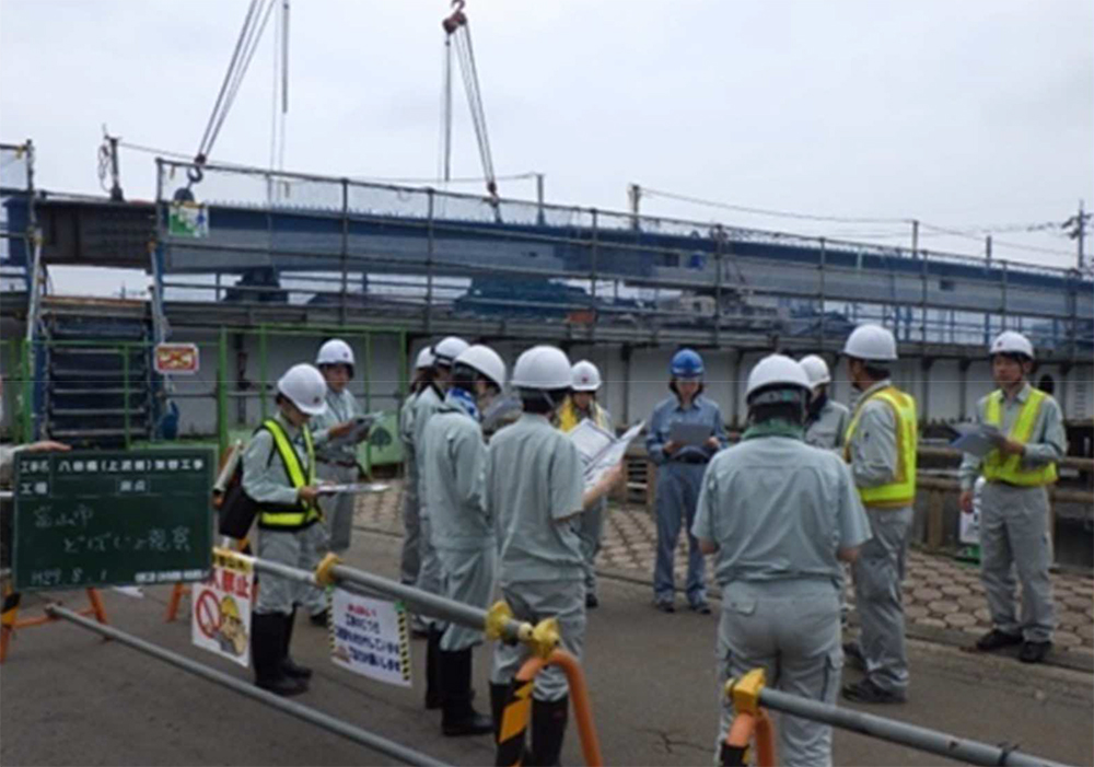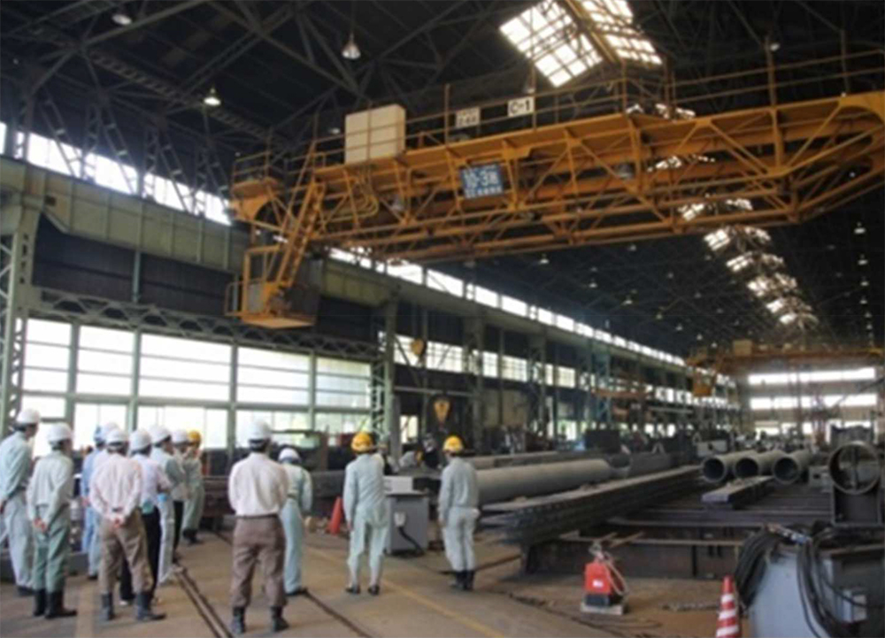 「植野塾」での川田工業富山工場見学。橋梁製作を肌で感じてもらうために