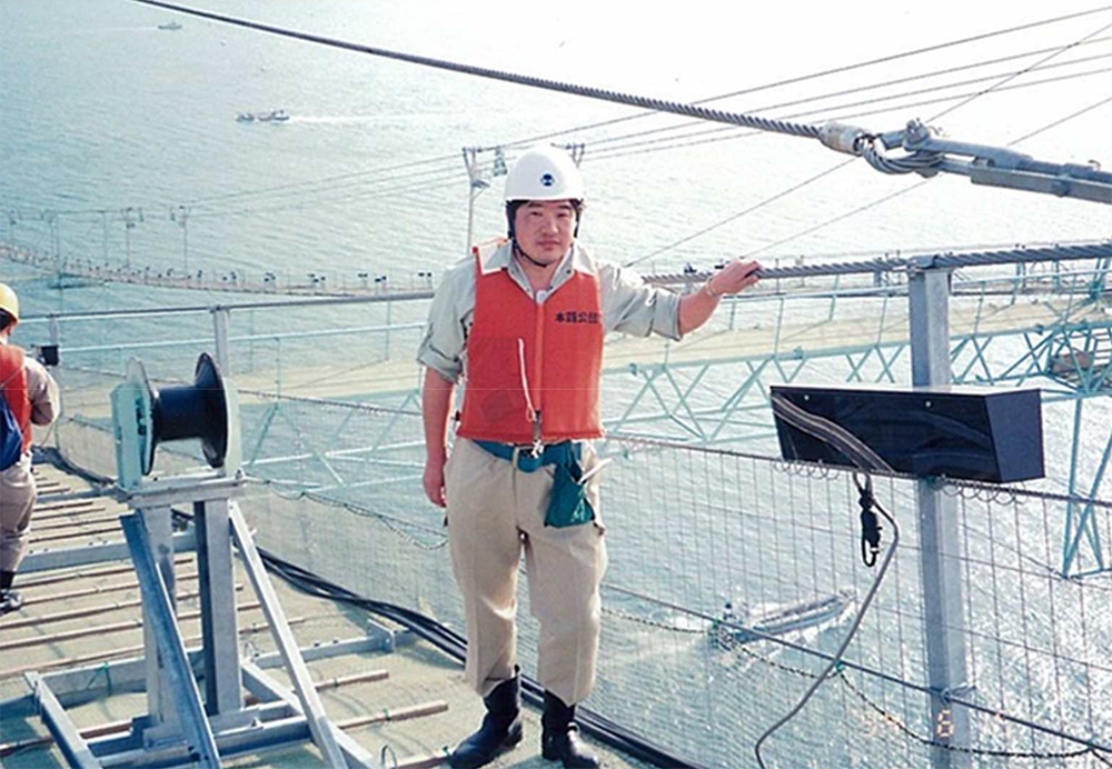本州四国連絡橋の現場(筆者30代)。キャットウオークの上で