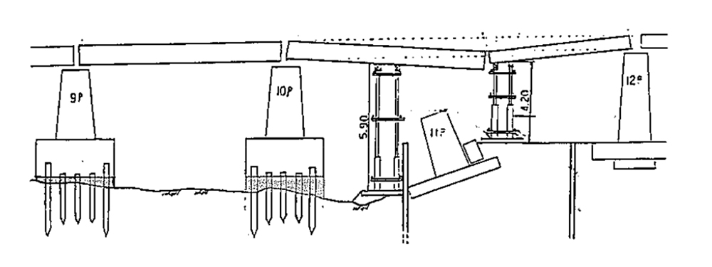 2)11P橋脚の基礎下部洗堀による橋脚転倒