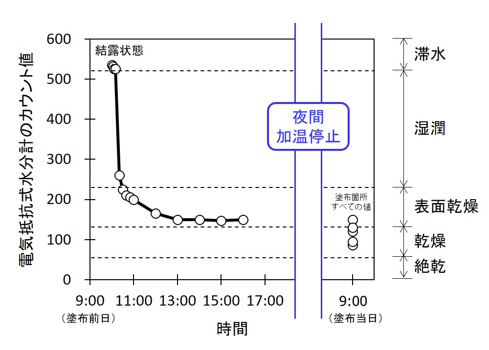 塗布前の水分の除去と管理、塗布後の加温継続が大切