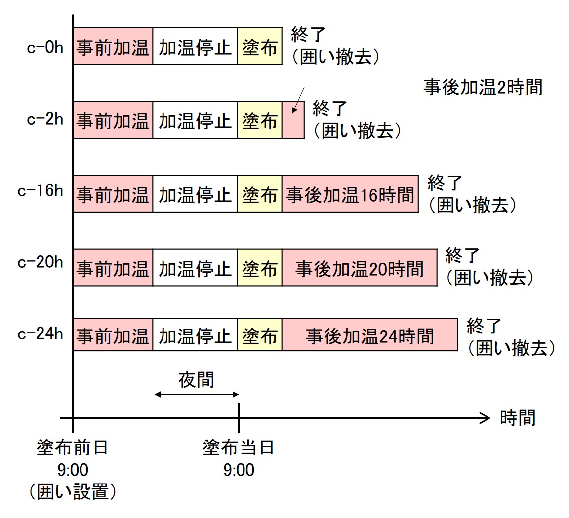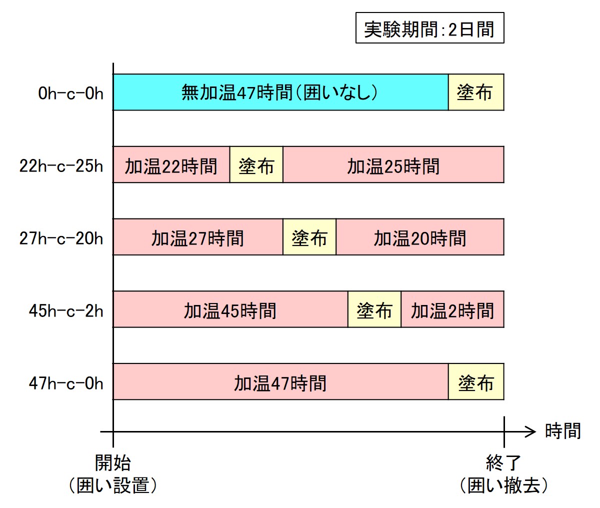 そこで、シリーズⅡとして、塗布後の加温効果に着目した現場検証を行いました。