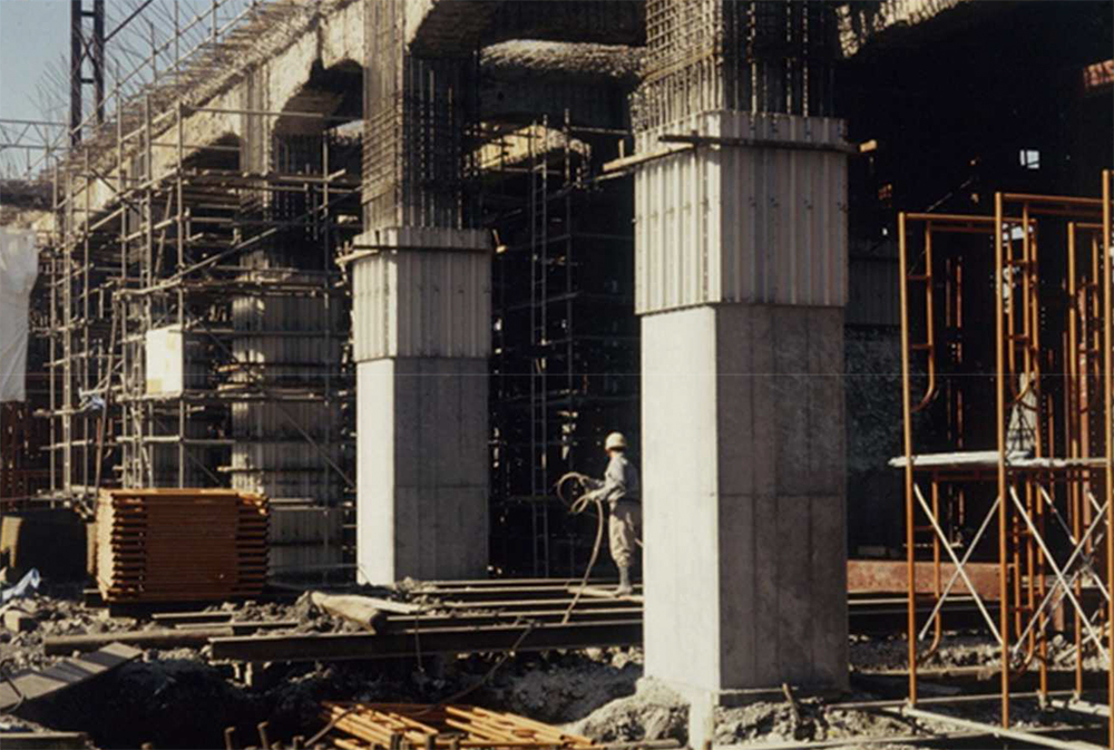 被災した高架橋は駅構内で4線の軌道があったので、片側2線を仮復旧して列車を通し、残り2線を本復旧し、その後仮復旧の2線を本復旧部分に移し、仮復旧部分を本復旧するという順序に決めました。