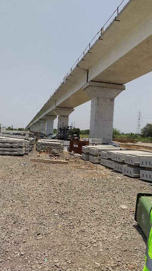 500㎞間にインドの州が2つあり、北側の州知事は今の首相派でしたので、工事はどんどん進んでいます。南側の州知事はしばらく前までは、反首相派でしたので全く契約ができなかったのですが、しばらく前の選挙で、首相派に変わったので、一気に工事の契約が進みだしています。写真-2は高架橋の様子です。桁式の高架橋がどこまでもできているのが見えます。