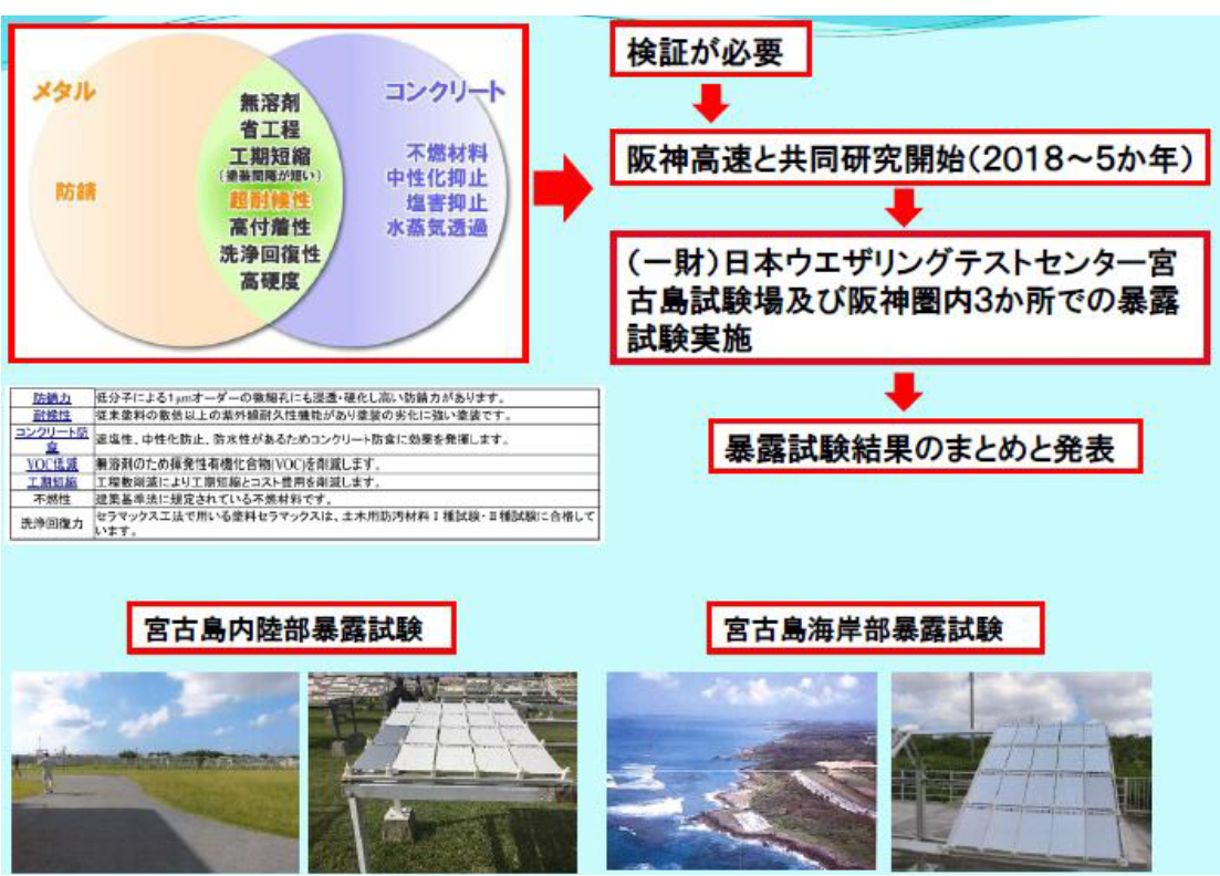 ㈱セラアンドアースが保有する無機形塗装仕様と鋼道路橋防食便覧で示す新設仕様、塗替仕様等の性能検証を実施した。以下にその概要を示す。