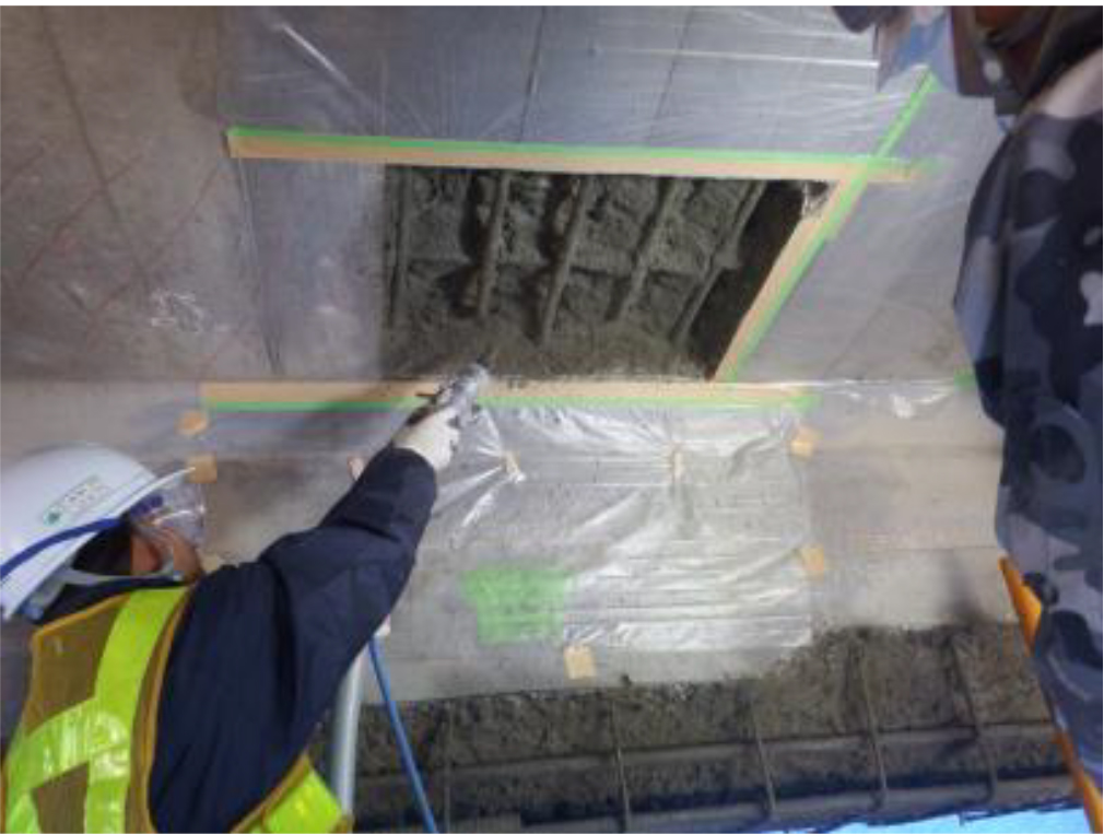断面修復を実施しても、既存のコンクリートから断面修復箇所への塩分供給や、マクロセル腐食などによる再変状が懸念されました。そこで、断面修復の際には、腐食している鉄筋の背面20mm以上の深さまではつり取り、鉄筋背面のケレンを入念に行うとともに、マクロセル腐食抑制のため鉄筋防錆材は亜硝酸塩系の材料を使用しました。