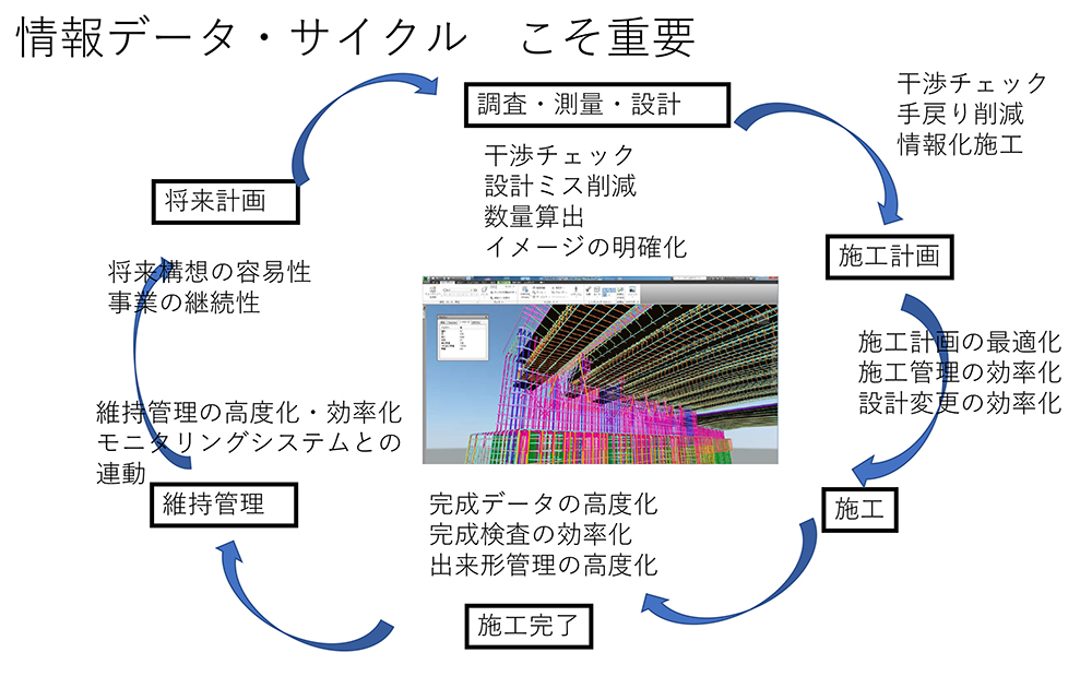 橋梁点検のマネジメントサイクルを回すと良く言われるが、大局的に土木工事を考えれば「情報のサイクルを回す」だ。これが下手なのが日本という国。そして、土木技術者。